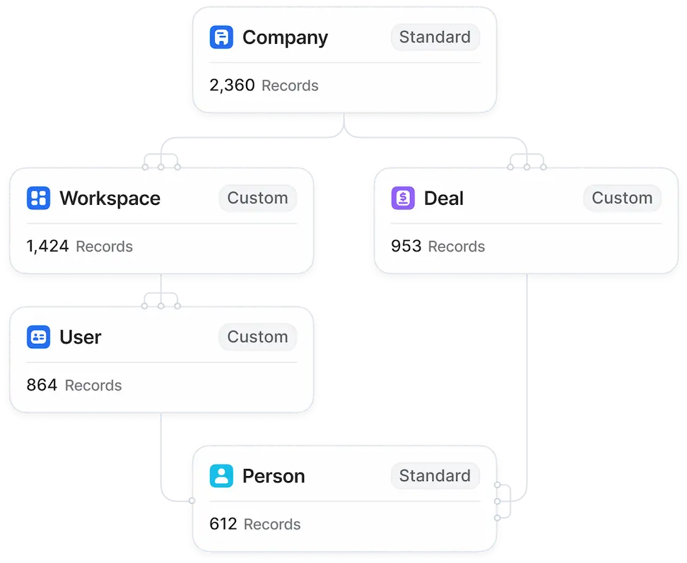 A CRM for any use case. Easily create custom objects that match your business’ unique data structure.